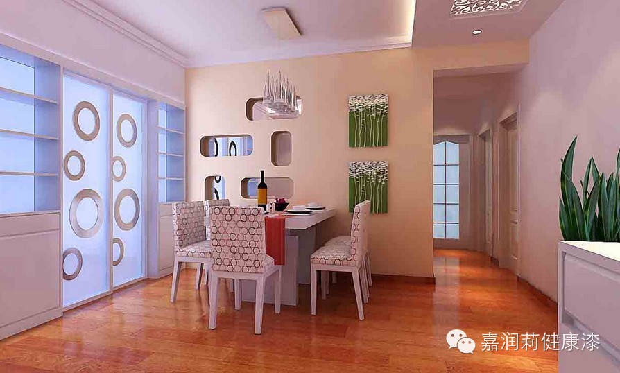 使用率高的餐廳要求使用有較高光澤度的**涂料,這樣便于清洗。如果非正式的餐廳位于廚房內或面向廚房,您可以考慮使用單色調的配色方案.或者與廚房內的旅色搭配起來。在這種情況下也可以使用互補色的配色方案,與相鄰的空間形成和諧、一致的色彩搭配。餐廳是使用高檔裝飾面漆的理想空間,深而濃重的色彩往往被用來創造富有動感的餐廳。用裝飾涂料模仿出優推的質地,使餐廳的琦面顯得更加稚致。增加生動性。通過多種富有創造性的設計,可以使餐廳充滿活力,例如用裝飾性面漆涂別琦面的搜蓋物、重點琦面或天花板,以打造一間色彩艷麗、圖案生動的餐廳。